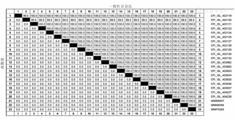 图1中SARS-CoV-2序列均从在GISAID和NCBI数据库下载序列(MN908947.3、MN975262、MN938384下载于NCBI,其他均下载于GISAID数据库)。以BetaCoV/Wuhan/IVDC-HB-01 S基因核苷酸在NCBI数据库搜索序列相似度中等一致的基因,经blast对齐后制作进化树,以DNASTAR分析所有SARS-CoV-2核苷酸序列变异,用SIMPLOT分析核苷酸的相似性。图1表明现有的23个SARS-CoV-2全基因组均分布在一个大的进化分支上,除BetaCoV/Wuhan/IVDC-HB-04在核苷酸18 531~18 587缺失(以MN908947.3核苷酸序列为参考)外,基因组序列同源性达到100%(图2)。