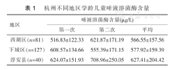杭州不同地区学龄儿童唾液溶菌酶含量