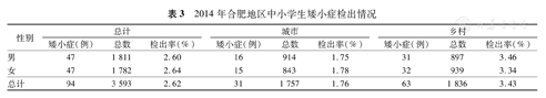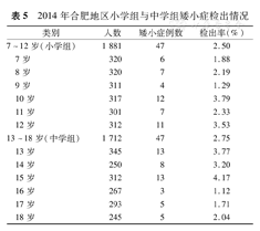 2014年合肥地区中小学生矮小症检出情况