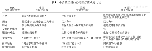 | 地区分级诊疗模式 | 中国医疗联合体 | 美国管理式医疗 | 英国整合性保健 |