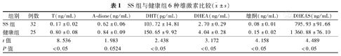 SS组与健康组6种雄激素比较(