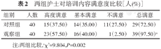 对照组、观察组对培训内容的满意度分别为72.50%、97.50%,比较发现观察组满意度更高(P<0.05),见表2。
