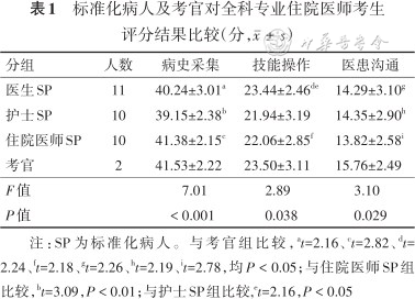 标准化病人及考官对全科专业住院医师考生评分结果比较(分,)