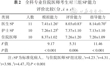 探讨不同教育背景标准化病人(SP)在全科专业住院医师规范化培训(以下简称规培)中的应用效果。