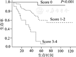 我们建立了一个简单的评分系统,将统计得出的影响预后的AFP水平<100 μg/L或>1 000 μg/L、肿瘤多发、PRETEXT分期(IV期)和转移、血管侵犯分别赋予1分,经统计得出患儿预后1分组和2分组差异没有统计学意义(P=0.279),3分组和4分组差异没有统计学意义(P=0.438),鉴于此我们将此系统分为三组即0分组、1~2分组、3~4分组,这三组有明显统计学意义(P<0.001)具体详见图2。新建分期系统与PRETEXT、TNM、CCSG/POG系统对比如表5。