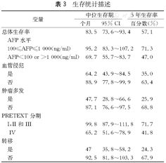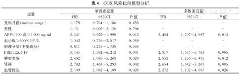 | AFP<100或>1 000 ng/ml | 2.341 | 0.922~1.998 | 0.012 | 2.454 | 1.207~4.987 | 0.013 |