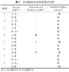 术前评估全身畸形受累程度十分重要,特别是下肢畸形,获得良好的关节功能和下肢力线,是决定患儿能否独立行走的前提条件。AMC髋关节双侧脱位患儿多伴有膝足的畸形,治疗上遵循肢体远端到近端的顺序(足、膝、髋)。本组均采取此手术策略,首次先采用Ponseti方法纠正先天性马蹄内翻足畸形,对合并膝关节畸形者,如第1、3、8例合并膝关节脱位或过伸畸形者,行长腿石膏同时纠正先天性马蹄内翻足和膝关节畸形,待足膝畸形纠正后再行髋关节脱位治疗。对于髋关节是否手术或保守治疗,St Clair和Zimbler[11]建议髋关节活动度较好、上肢关节挛缩受累少、有行走潜能的双侧髋关节脱位患儿,可以行开放复位。虽然本组3髋切开复位术后关节活动良好,但第1、3例因膝关节治疗后残留轻度过伸畸形需借助助行器完成社会活动,第8例患儿因膝关节畸形治疗效果差,关节活动受限、肌力差,社会活动只能依靠轮椅完成。因此,术前对患儿全身畸形受累程度、患儿活动潜能应综合评估,对于关节受累情况多、畸形严重、活动潜能小的患儿需慎重选择手术治疗,术后髋关节功能改善有限,同时其他关节功能差,不能获得满意的行走能力和社会活动能力。
