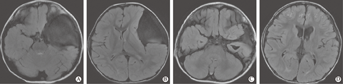 随访囊肿术后变化及对硬膜下积液转归进行统计学检测,采用SPSS统计软件对发生积液Ⅱ型和Ⅲ型囊肿患儿间年龄进行t检验、与积液吸收转归行卡方检验,P<0.05为差异有统计学意义。