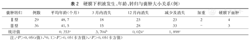 | 分型 | 例数 | 消失 | 缩小≥1/2 | 缩小<1/2 | 无变化及加重 |
