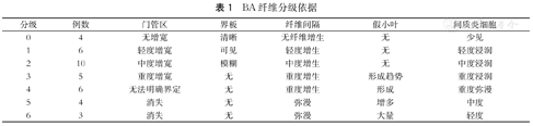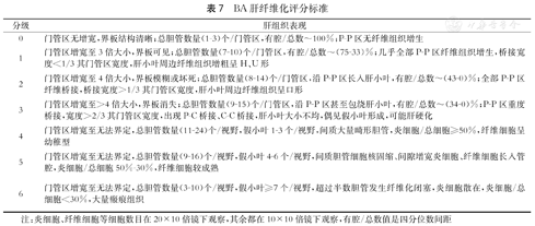 综合胆管反应及纤维化病变程度,制定BA肝纤维化分级标准见表7。