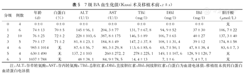 7级BA血生化值(Kasai术及移植术前,