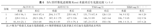 BA肝纤维化进展期Kasai术前术后生化值比较(
