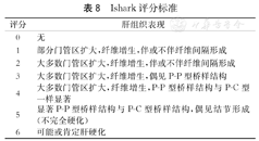 | 4 | 大多数门管区扩大,纤维增生,P-P型桥样结构与P-C型一样显著 |