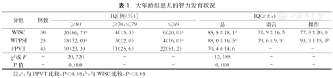 大年龄组患儿的智力发育状况
