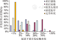我们将并发症的概率分为<1%、2%~5%、6%~10%、11%~20%、21%~30%和>30%,6组,分别统计各种并发症在各组所占的比例(图1)。65.8%(58/82)的受访者选择出现尿瘘的概率超过10%,42.7%(35/82)的受访者表示尿道狭窄发生率超过10%,93.9%(77/82)的受访者表示出现感染的概率<10%,43.9%(36/82)的受访者表示出现阴茎头裂开的概率<1%,93.9%(77/82)的受访者表示出现缝合的尿道完全坏死裂开的概率<1%。