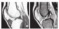 虽然X线片对该病的诊断无重要价值,仅能偶而发现关节肿胀、或密度增高的圆形阴影,病变侵蚀关节面时关节边缘缺损、硬化和增生。关节内受累时显示关节间隙增宽,邻近骨皮质压迫性受累。但我们还是建议常规行X线检查,以排除其他病变。MRI对于该病有极高的敏感性与特异性,表现为关节内不规则软组织肿块,呈弥漫性或浸润性生长,可明确病变的部位及范围,以及关节内受累情况。在各常规序列上,肿块均呈低信号,这是该病的影像学特征之一。其中,T1W1与T2W1均呈低信号,以T2W1影像最为明显,这是由于具有顺磁性的含铁血黄素沉着造成。如合并出血坏死,T2W1信号则较为混杂,可以为低、等或高低混杂信号。彩色超声检查可区分肿物为实性、囊实性、囊性,以及有无血流频谱,从而与髌下脂肪垫囊肿、血管瘤等相鉴别。