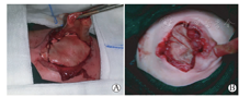 脱细胞真皮和小肠黏膜下层等生物补片已在临床取得良好效果。本组研究中利用脱细胞真皮和小肠黏膜下层生物补片修补腹裂,术后并发症较对照组较少发生,差异有统计学意义,即使发生切口疝,一般于术后1年自行痊愈,无需再行手术修补,而对照组部分切口疝患儿需施行手术修补。本研究组曾经应用SIS和脱细胞真皮组织作为补片修复兔腹壁,发现移植后安全有效,能促进兔腹壁闭合[18]。在本组研究中,我们利用脱细胞真皮组织、小肠黏膜下层生物补片技术一期修补腹裂,效果满意。
