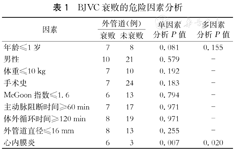 单因素分析发现年龄≤1岁和感染性心内膜炎可能是BJVC衰败发生的相关因素(P值分别为0.081,0.007)。经多因素分析显示,感染性心内膜炎是BJVC衰败的独立危险因素(OR 6.735,95%CI 1.348~33.647)。