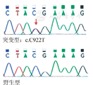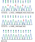 注:红色箭头:突变位点所在位置显示杂合双峰