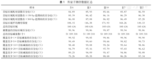 | 被覆盖的目标区域百分比(%) | 99.96 | 99.86 | 99.87 | 99.94 | 99.86 |