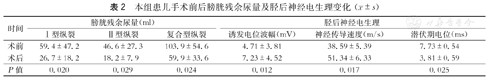 | Ⅰ型纵裂 | Ⅱ型纵裂 | 复合型纵裂 | 诱发电位波幅(mV) | 神经传导速度(m/s) | 潜伏期电位(ms) | |