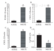坏死性小肠结肠炎(necrotizing enterocolitis,NEC)是最为常见的新生儿外科急症,以肠道坏死为特征,401~1 500 g新生儿的平均发病率为11%,病死率高达15%~30% [1,2]。多个危险因素涉及NEC的发病,流行病学分析提示早产、肠道菌群紊乱、肠道缺血、人工喂养是公认的致病诱因[3,4,5],但确切发病机制仍不清楚。NEC患儿手术切除的肠组织严重坏死且伴有非特异性炎症改变,并不适合研究疾病早期相关改变[5,6]。因此,体外动物模型的建立,可以更清楚了解该病的发生发展机制,对疾病的预防和治疗有重要价值。