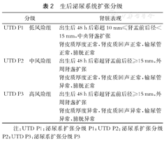 | UTD P3 高风险组 | 出生后48 h后彩超肾盂前后径≥15 mm,外周肾盏扩张 |