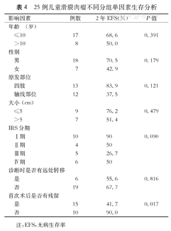 25例儿童滑膜肉瘤不同分组单因素生存分析