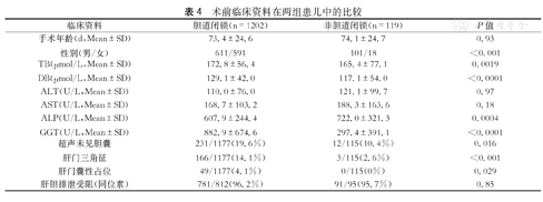 | 临床资料 | 胆道闭锁(n=1202) | 非胆道闭锁(n=119) | P值 |