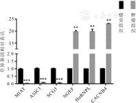 肾母细胞瘤的发生发展是一个多基因、多阶段参与的复杂过程。RNA作为DNA与蛋白质之间生物信息传递的桥梁,所有表达基因的信息及其转录水平即为转录组。转录组是特定细胞或组织在某一发育阶段或功能状态下转录出的总RNA。转录组研究是基因功能及结构研究的基础和出发点,是解读基因组功能和揭示细胞或组织中分子组成必需的,并对理解机体发育和疾病病因具有重要作用。本研究应用高通量测序技术构建了肾母细胞瘤的RNA表达谱,发现有748个基因表达异常,进一步通过生物信息学分析发现:这些差异基因主要参与生化活动调节、细胞增殖、系统分化、RNA多聚酶Ⅱ转录调节等生物学过程;通过KEGG信号通路分析发现,差异基因主要涉及白细胞跨内皮迁移信号通路、p53信号通路、肿瘤转录调控异常等通路;通过qPCR证实HnRNPL在肿瘤组织中高表达,与测序结果相一致,说明测序结果是可信的,这为寻找肾母细胞瘤关键分子提供了有力的理论和实验依据。