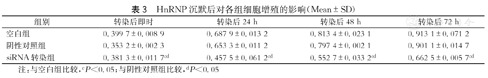 | HnRNP沉默后 | 0.131 5±0.005 7ab | 0.466 2±0.043 3ab | 0.185 1±0.023 1ab |