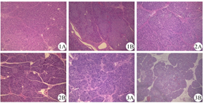 甲醛固定后常规取材,石蜡包埋切片,然后行HE染色固定及免疫组织化学染色。免疫组织化学染色采用EnVision法,所用抗体均为丹麦Dako公司产品;根据说明书进行抗原修复,用二氨基联苯胺显色。