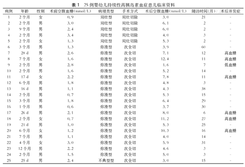 25例婴幼儿持续性高胰岛素血症患儿临床资料