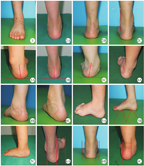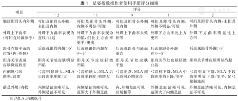 | 跟骨在额平面的位置(内/外翻) | 后面观跟骨内翻>5° | 后面观跟骨内翻在0~5° | 后面观跟骨与地面垂直 | 后面观跟骨外翻在0~5° | 后面观跟骨外翻>5° |
