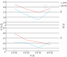 总体TFPI中位值为3(2,5),LFPI中位值为3(2,4.5),RFPI中位值为4(2,5)。其中,男童LFPI、RFPI中位值分别为3(2,5)和4(2,5),女童LFPI、RFPI中位值分别为3(2,4)和3(2,5)。