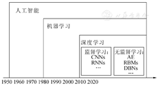 儿童疾病的辅助诊断方法包括超声、放射和病理诊断等方式,这些检查的结果主要以图像信息的形式储存。应用于医学图像分析的人工智能技术主要是深度学习(deep learning,DL),属于机器学习中一个较新且重要的分支,DL是指对多样本数据进行一定的训练,最后得到多层深度神经网络模型的过程,分为监督学习和无监督学习。其中监督学习中的卷积神经网络(convolutional neural networks,CNNs)是目前影像学中的研究热点,这些概念的关系如图1[3,4]。