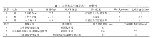 | 3 | 男 | 8月龄1 d | 8.5 | Ⅱ | 右冠窦及无冠窦交界 | 5 | 3.0 |