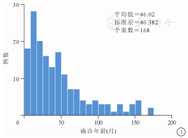 最终有168例患儿纳入本次研究。其中,男109例(64.9%),女59例(35.1%)。确诊时年龄为(46.0±40.4)个月,范围在1~170个月,中位年龄为34.0个月。患儿确诊年龄分布如图1所示,135例(80.4%)患儿的确诊年龄<72个月。