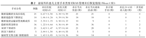 泌尿外科患儿主要手术类型ERAS管理术后恢复情况(Mean±SD)