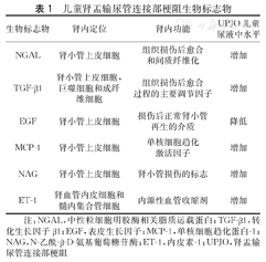 注:NGAL,中性粒细胞明胶酶相关脂质运载蛋白;TGF-β1,转化生长因子β1;EGF,表皮生长因子;MCP-1,单核细胞趋化蛋白-1;NAG,N-乙酰-β-D-氨基葡萄糖苷酶;ET-1,内皮素-1;UPJO,肾盂输尿管连接部梗阻