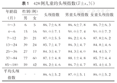 | 年龄段(月) | 性别(例) | 头颅指数 | 男童头颅指数 | 女童头颅指数 | |