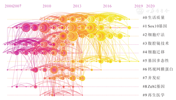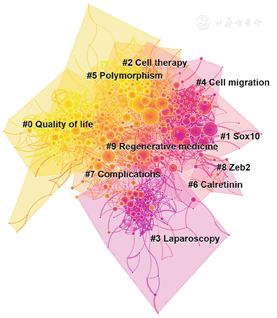 注:Quality of life,生活质量;Sox10, Sox10基因;Cell therapy,细胞疗法;Laparoscopy,腹腔镜技术;Cell migration,细胞迁移;Polymorphism,基因多态性;Calretinin,钙视网膜蛋白;Complications,并发症;Zeb2, Zeb2基因;Regenerative medicine,再生医学