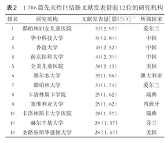 1 786篇先天性巨结肠文献发表量前12位的研究机构