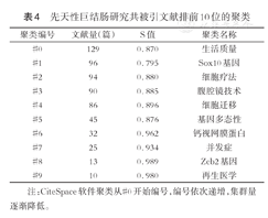 | 聚类编号 | 文献量(篇) | S值 | 聚类名称 |
