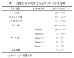 | 年龄范围 | Tanner分期 | AMH(pmol/L) |