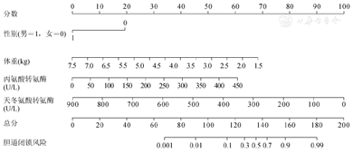 GGT<150 U/L和150~300 U/L胆汁淤积患儿的BA诊断指标存在差异,利用体重、性别、是否早产及术前肝功能建立两区间的列线图预测模型值得推广。