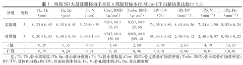 术后6周SD大鼠胫骨标本行Micro-CT扫描结果见表1。