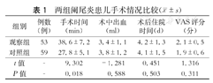 | 组别 | 例数(例) | 手术时间(min) | 术中出血(ml) | 术后住院时间(d) | VAS评分(分) |