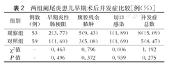 观察组术后早期炎性肠梗阻2例,腹腔脓肿5例,切口感染1例;对照组术后早期炎性肠梗阻、腹腔脓肿、切口感染分别为1例、3例、1例。两组并发症总数比较,观察组较对照组高,差异无统计学意义(P>0.05)(表2)。