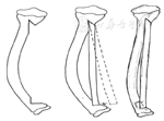 2008年,Ofluoglu等[32]的一项研究共纳入10例ALBT儿,均采用了预防性腓骨旁路移植手术,并将同种异体腓骨以承压方式置于胫骨后内侧,腓骨作为一个凹形承重支柱被镶嵌到胫骨近端干骺端和胫骨远端干骺端之间,绕过了胫骨的病变部分(图1)。所有患儿在术后6周内都打上石膏,6周后换成支具。手术时平均年龄为43个月,平均随访时间为78个月,所有的移植物在两端都与胫骨融合,无一例出现胫骨骨折或假关节。并发症包括3例同种异体移植物骨折,1例被吸收,1例同侧腓骨假关节形成。最后一次随访时,有4例接受了矫正性截骨术(3例为踝外翻,1例为胫骨干畸形),双侧胫骨长度差异平均为9 mm(0~37 mm)。与Lloyd-Roberts和Shaw报道的结果[31]相比,Ofluoglu等[32]的结果更让人满意,这可能与两组病例术前存在假关节的病例数差异有关。因此,Ofluoglu等[32]认为此术式不仅可以预防假关节,而且还可以避免额外的胫骨延长手术及其相关风险。